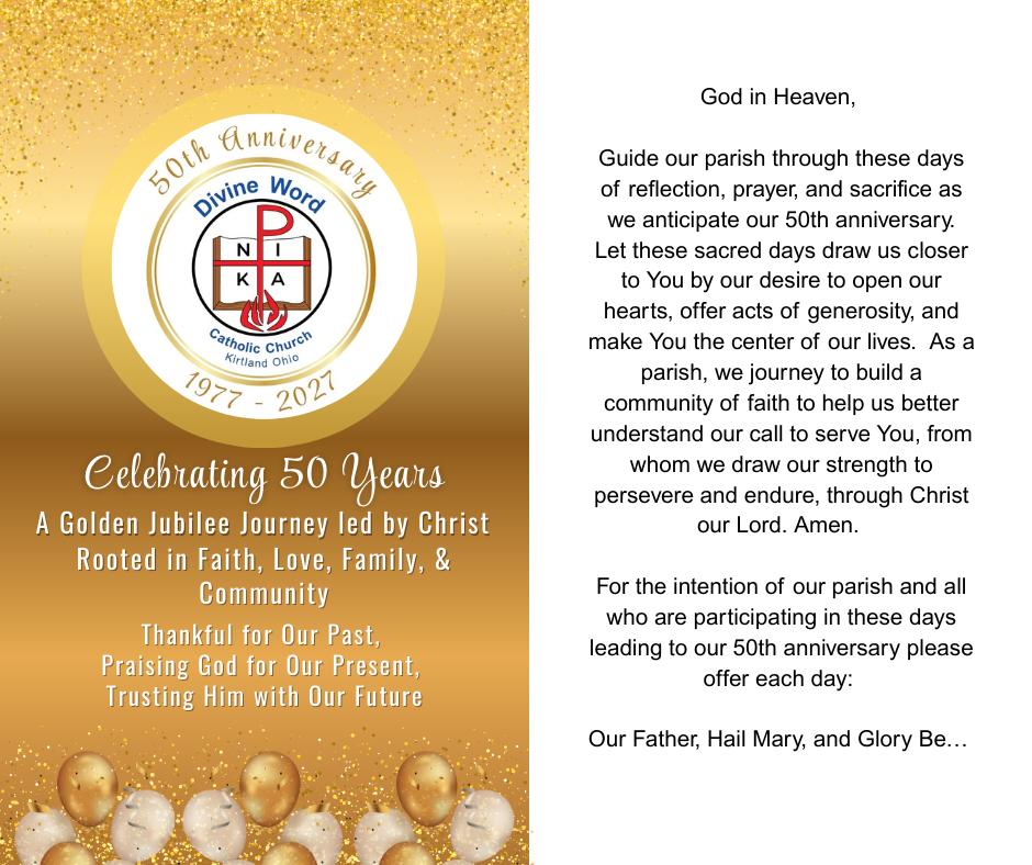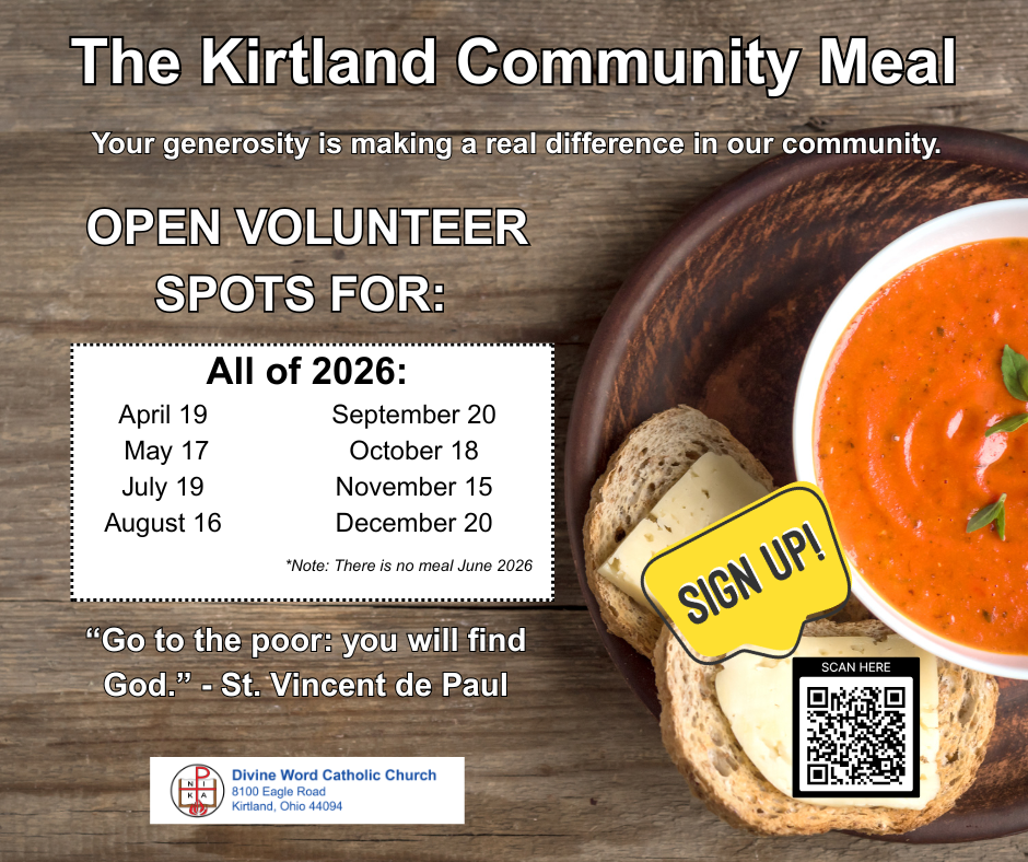 To register to join our Divine Word Parish Family, please click this link or call the office at 440.256.1412.